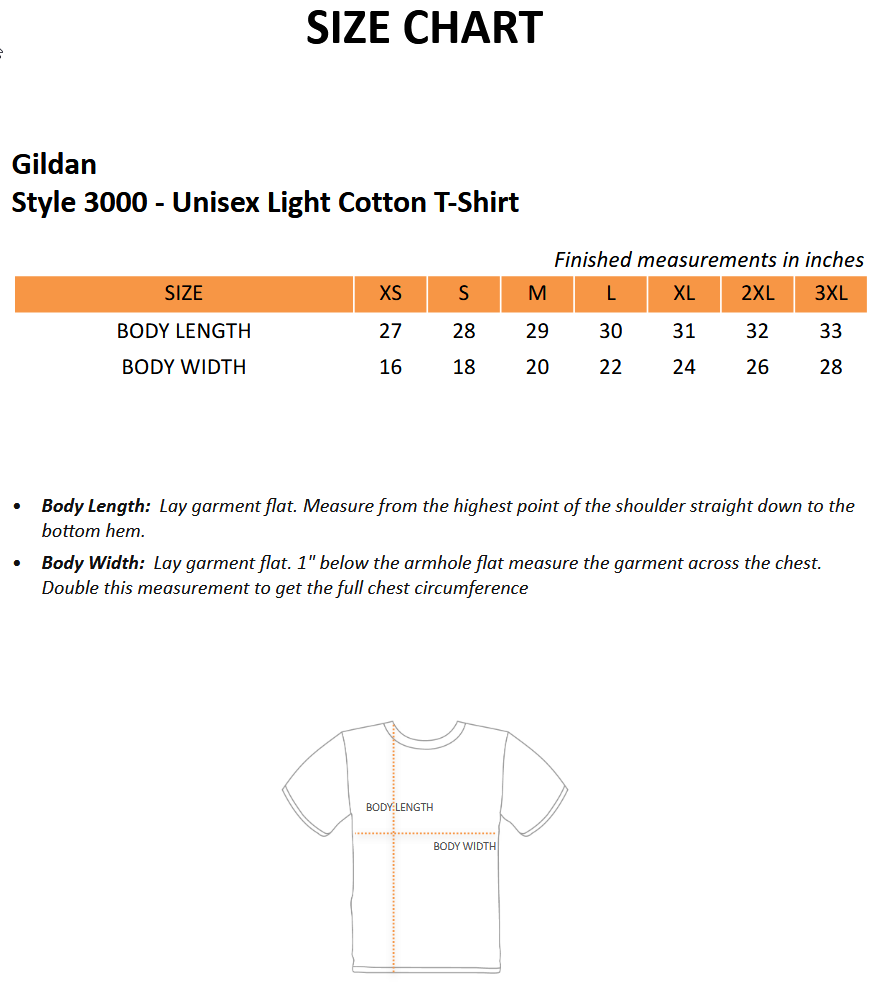 • Screen Print on GILDAN 3000 (US Sizes) • 100 % Cotton